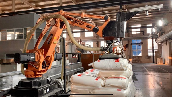 防排水板智能拆垛上料裝備。該設(shè)備有針對性地設(shè)計了防排水板自動拆垛上料系統(tǒng)的軟硬件組成,尤其是機器視覺、電控和機器人方面,完成了系統(tǒng)的部署及應(yīng)用。在機器視覺識別精準(zhǔn)性方面,料袋中心的平均定位誤差不超過2.5cm。在運行速度方面,袋料的平均拆垛上料時間在50秒以內(nèi)。
